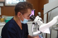 当院の治療では精密を期するために、マイクロスコープ(手術用顕微鏡)を導入しております。患部を最大20倍にも拡大できるマイクロスコープを使用し、本格的な精密治療を行っています。